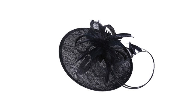 麻紗發(fā)飾_麻紗蕾絲印花紋時(shí)裝頭飾,羽毛桿裝飾花象牙白時(shí)尚頭箍宴會(huì)婚紗禮帽,帽子加工廠家。