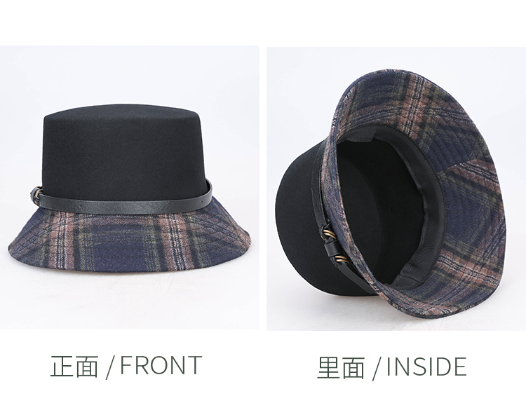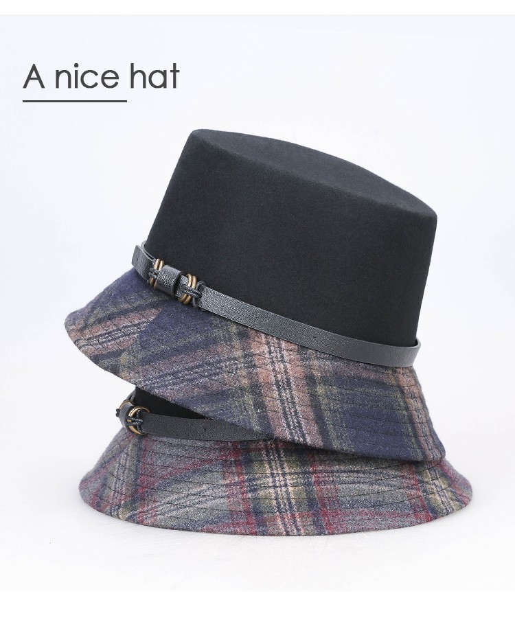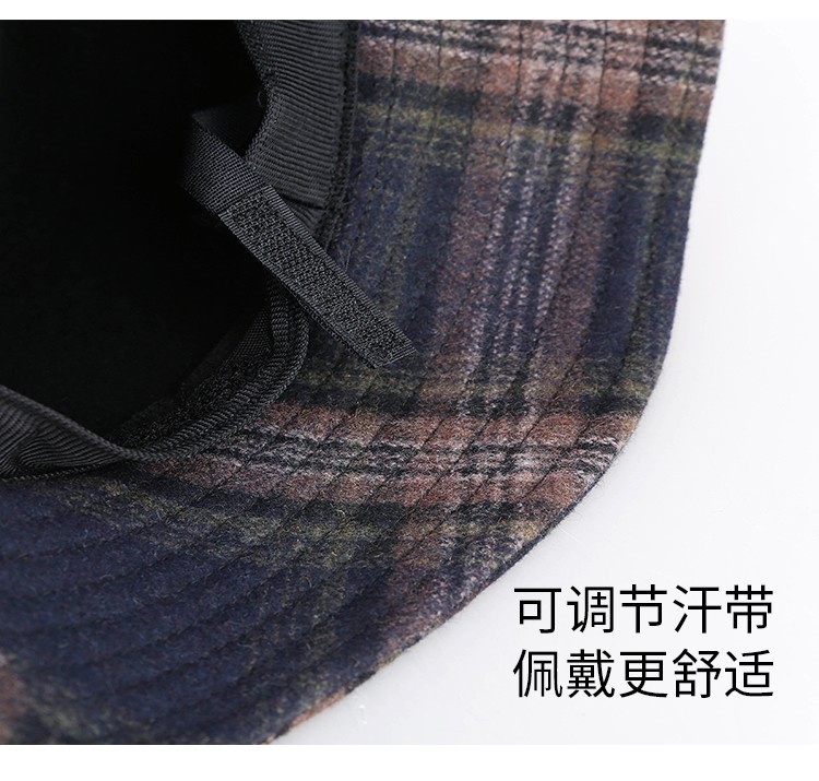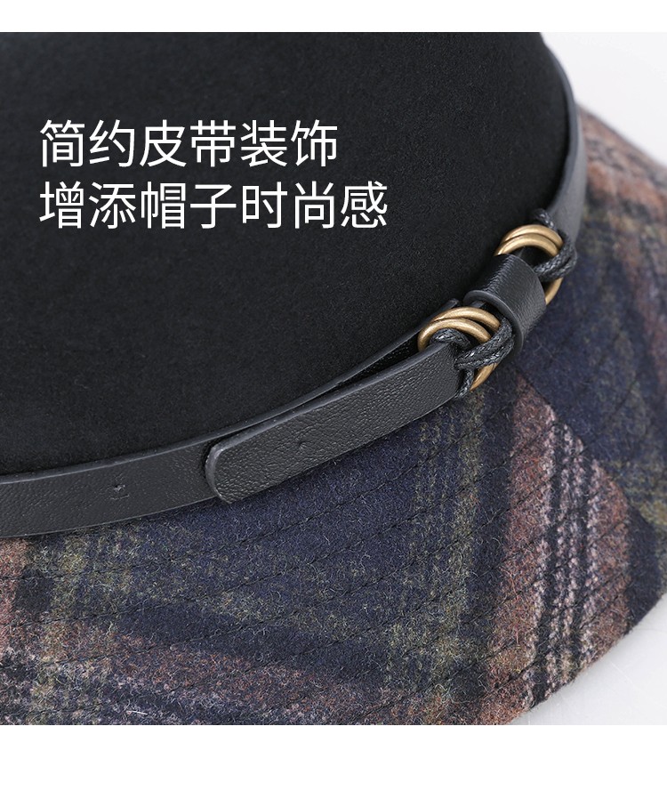 靈瓏小香風(fēng)格子漁夫帽女秋冬百搭帽子潮 英倫復(fù)古皮帶扣遮陽盆帽